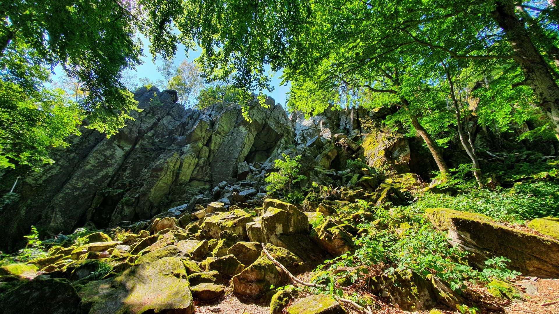 Bestaunen Sie bei einem Rundgang um die Steinwand die berühmte Felswand der Rhön . Fast über 100 Meter erstreckt sich die etwa 20 m hohe Phonolitwand im Wald direkt neben unserem Gasthaus. Die senkrecht abfallende Wand ist ein Paradies für Kletterer. Den Kletterführer können Sie in unserer Gaststätte für 6 € erwerben.